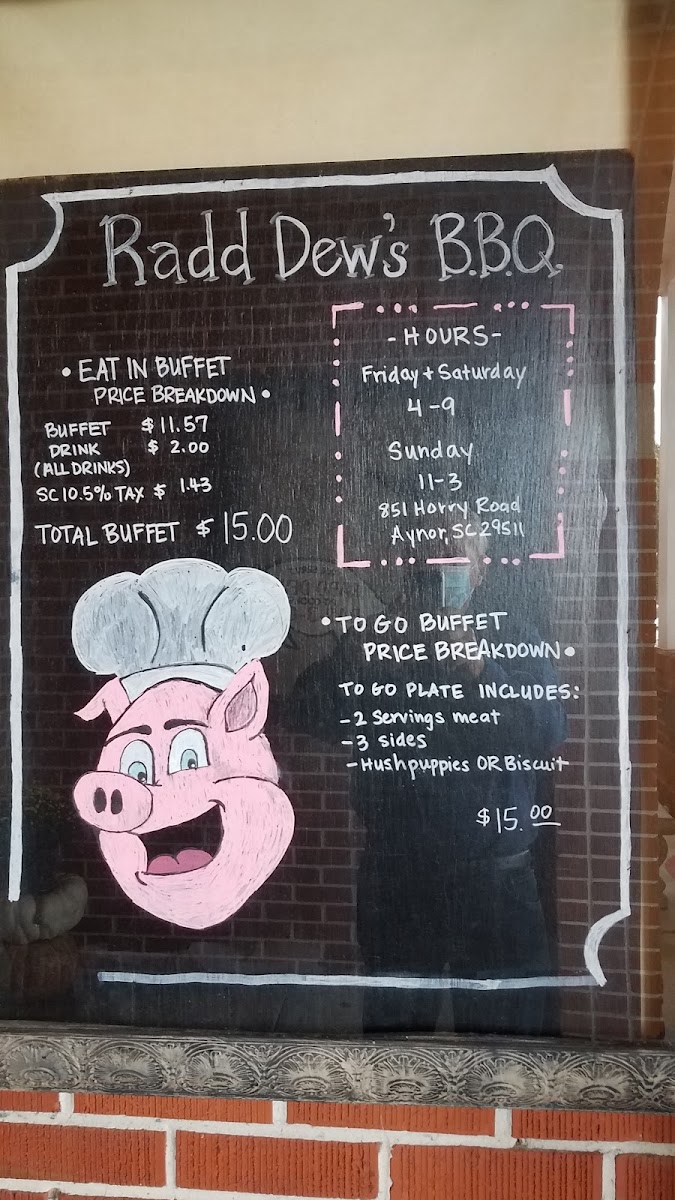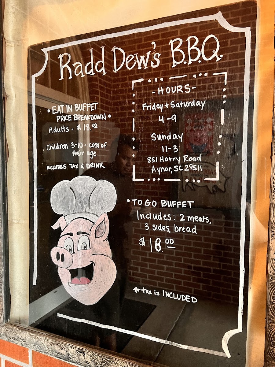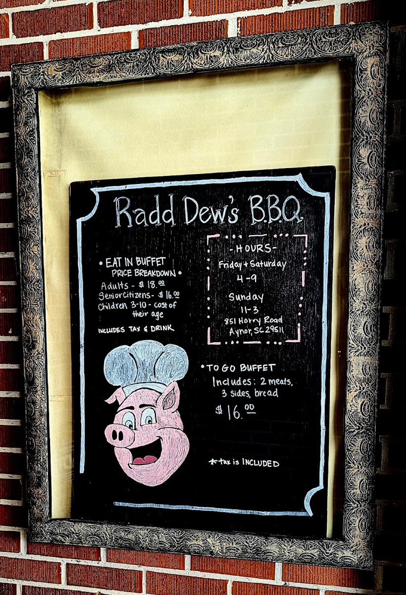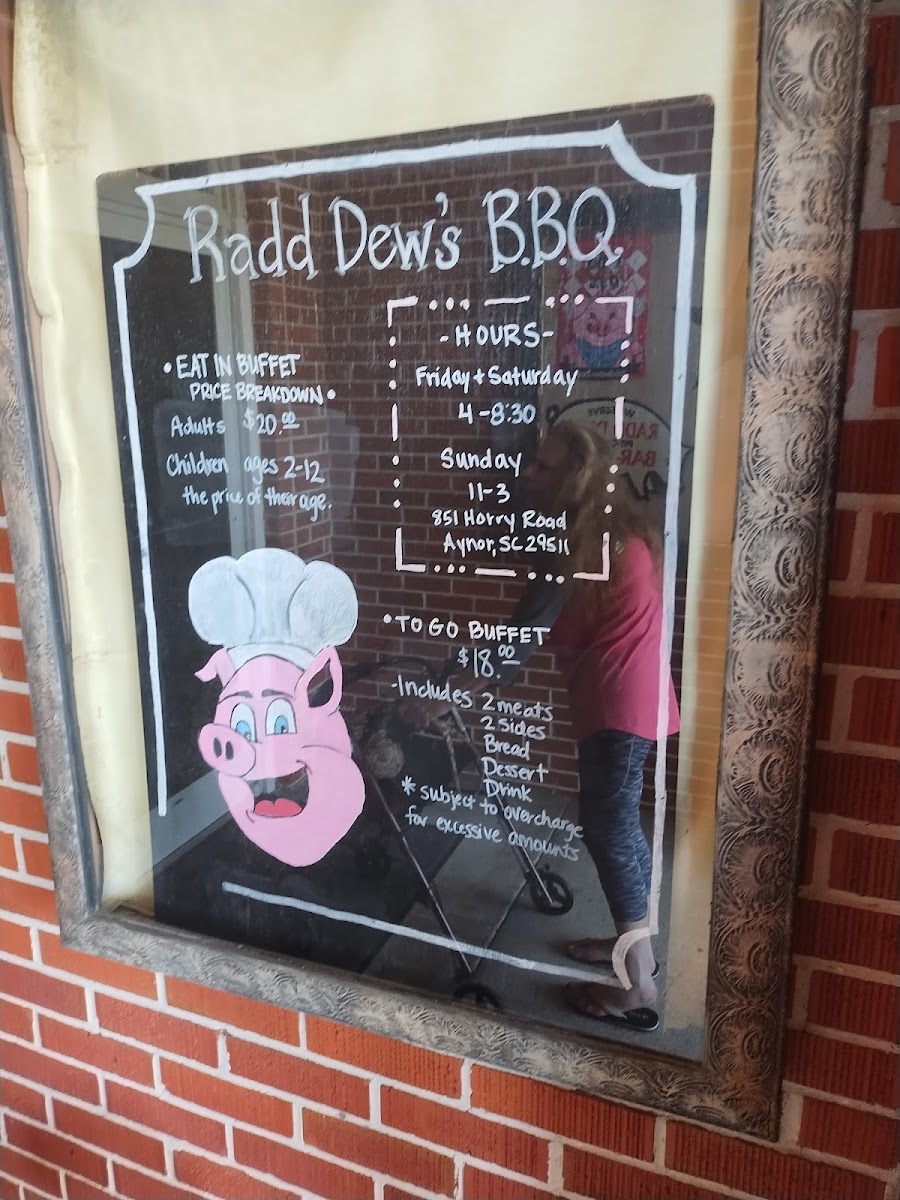 Radd Dew's Bar-B-Que offers a hearty selection of Southern BBQ dishes that cater to a variety of tastes. The BBQ Buffet stands out as the main attraction, providing an all-you-can-eat feast filled with classic barbecue options. For those seeking something more specific, the BBQ Pork Sandwich delivers a satisfying portion of tender pulled pork. If you're in the mood for a larger serving, the Chopped BBQ by the Pint is perfect for enjoying at home or sharing. For family gatherings, the Family Picnic Pack provides a great spread, ideal for sharing with loved ones. To complement your meal, a Dozen Hush Puppies adds a delicious side of crispy, golden goodness to round out the experience. Whether you're dining solo or with a group, Radd Dew's menu promises a flavorful and filling meal with Southern BBQ staples.